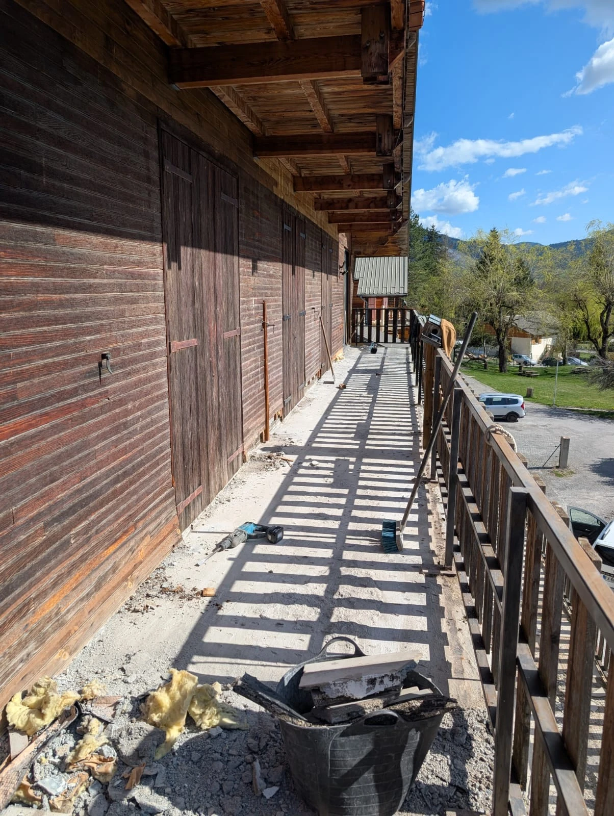 Une fois le carrelage retiré, notre équipe a procédé à la réparation de la maçonnerie abîmée afin de reconstituer une base solide. Ensuite, un nettoyage complet du support a été réalisé pour éliminer toute impureté et garantir une adhérence parfaite des futurs revêtements.